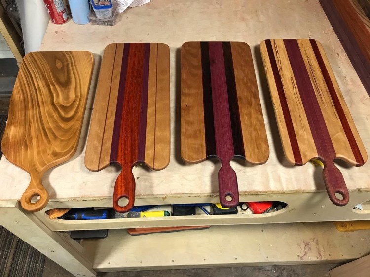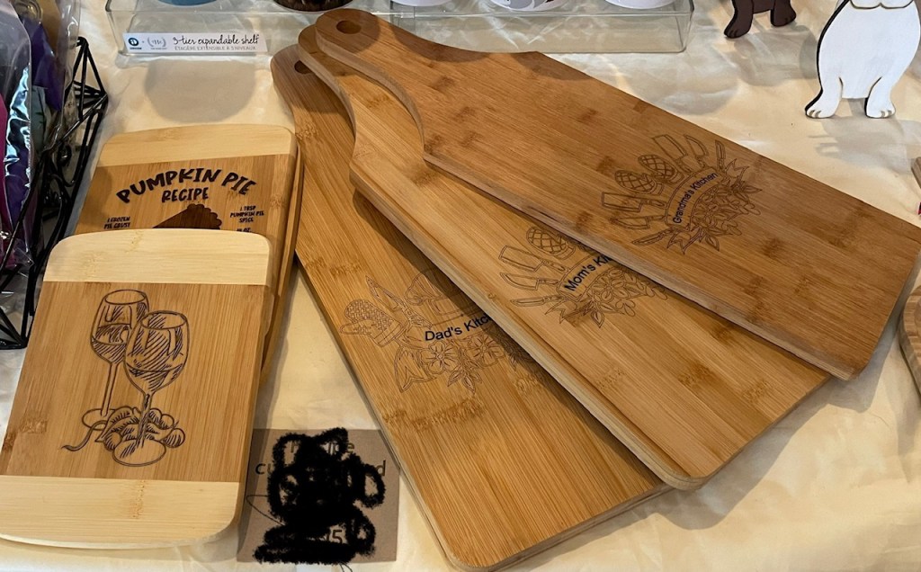Cutting Boards, can personalize with own rwecipe or anything you prefer. Starting at: $15 ea depending on wood type and size.