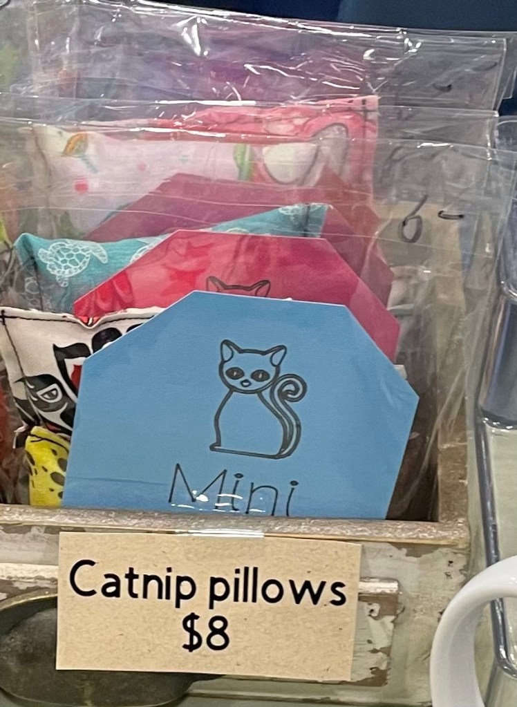 Catnip pillows 3 in each package. Random cloth pattern/design